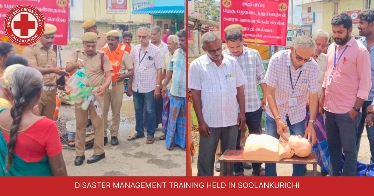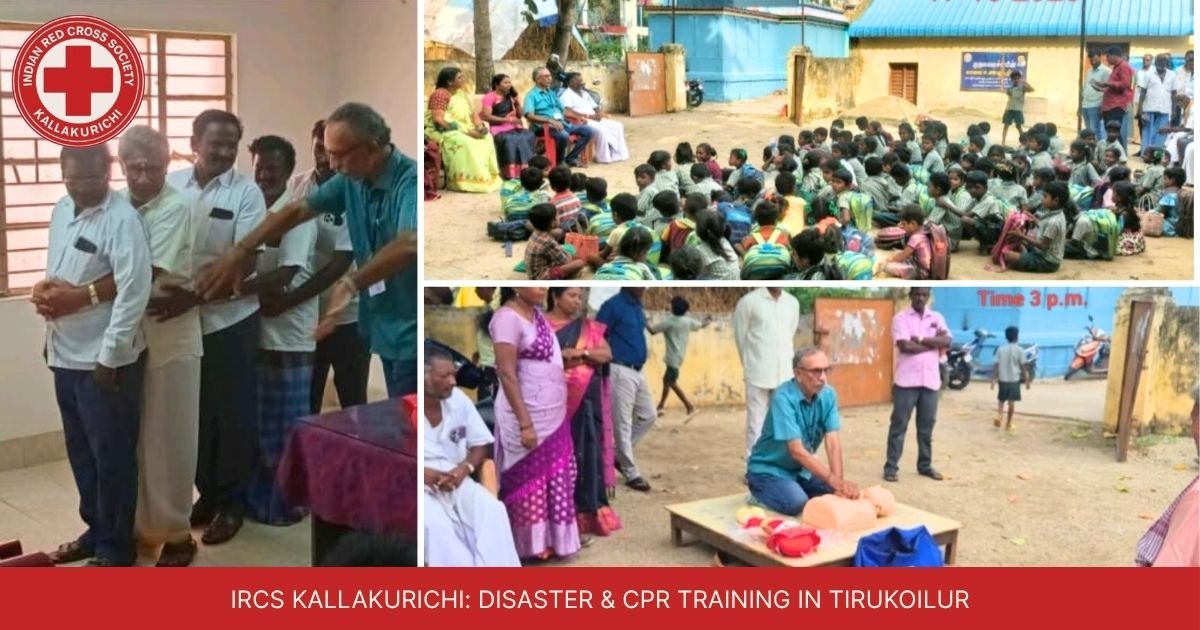 IRCS Kallakurichi conducted vital Disaster Management training for officials in Tirukoilur and a CPR awareness camp in Aavi Kolapakkam village to build community resilience.
