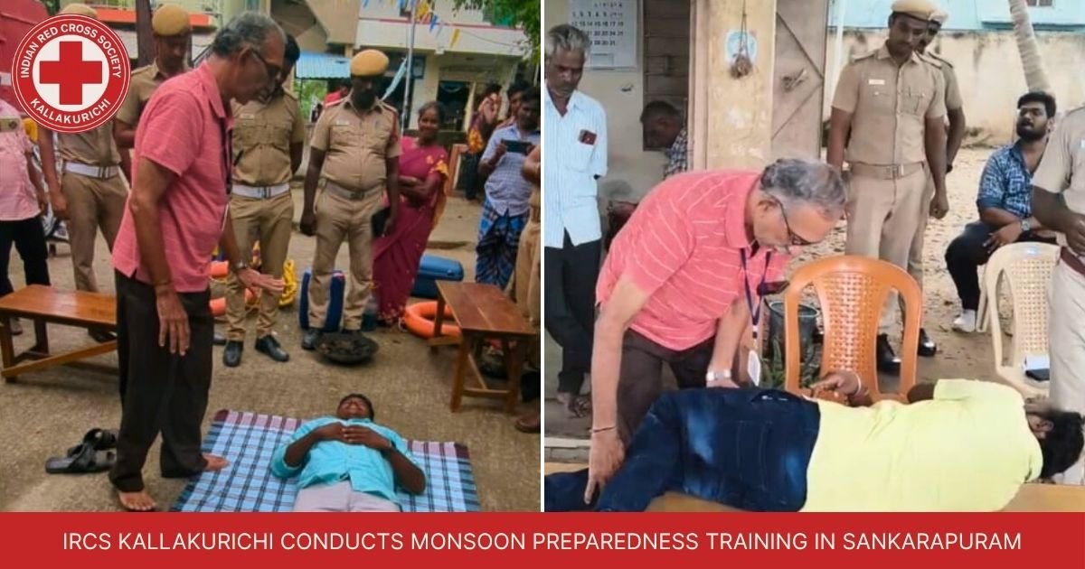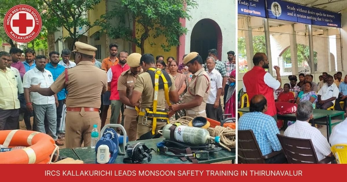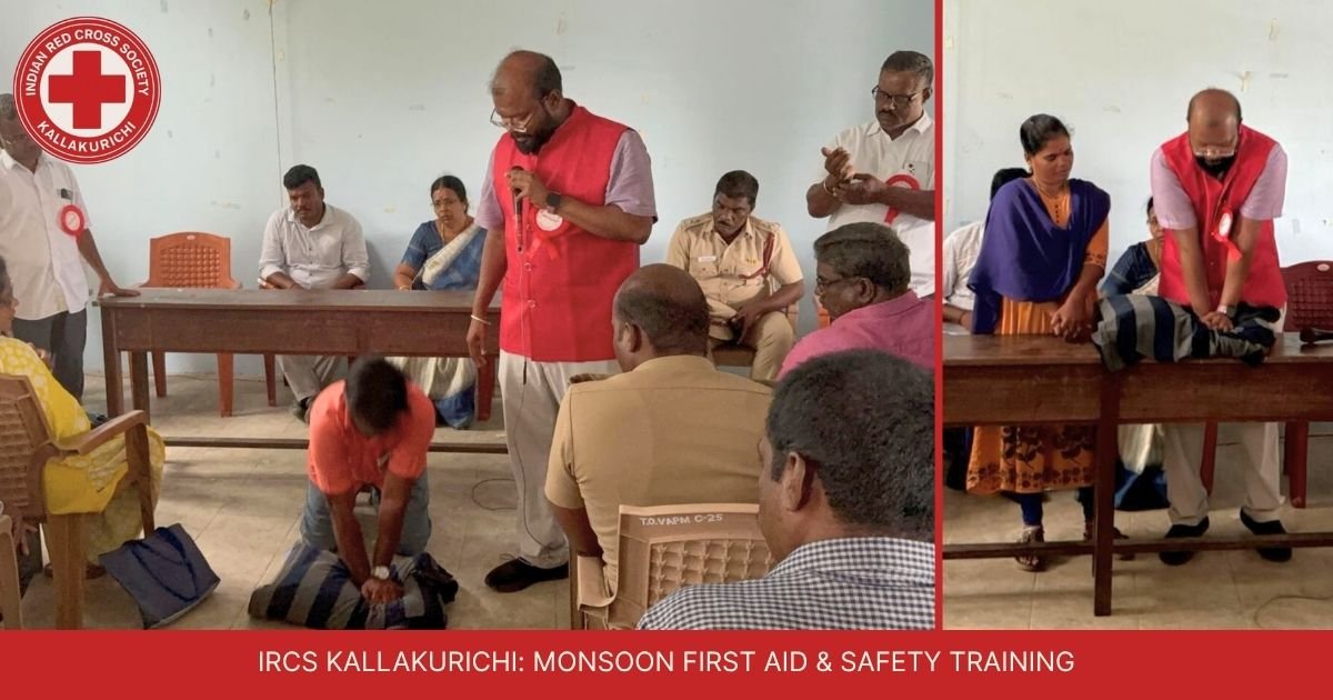 IRCS Kallakurichi conducted a vital multi-departmental monsoon preparedness training in Thirunavalur, equipping volunteers with first aid and safety skills.
