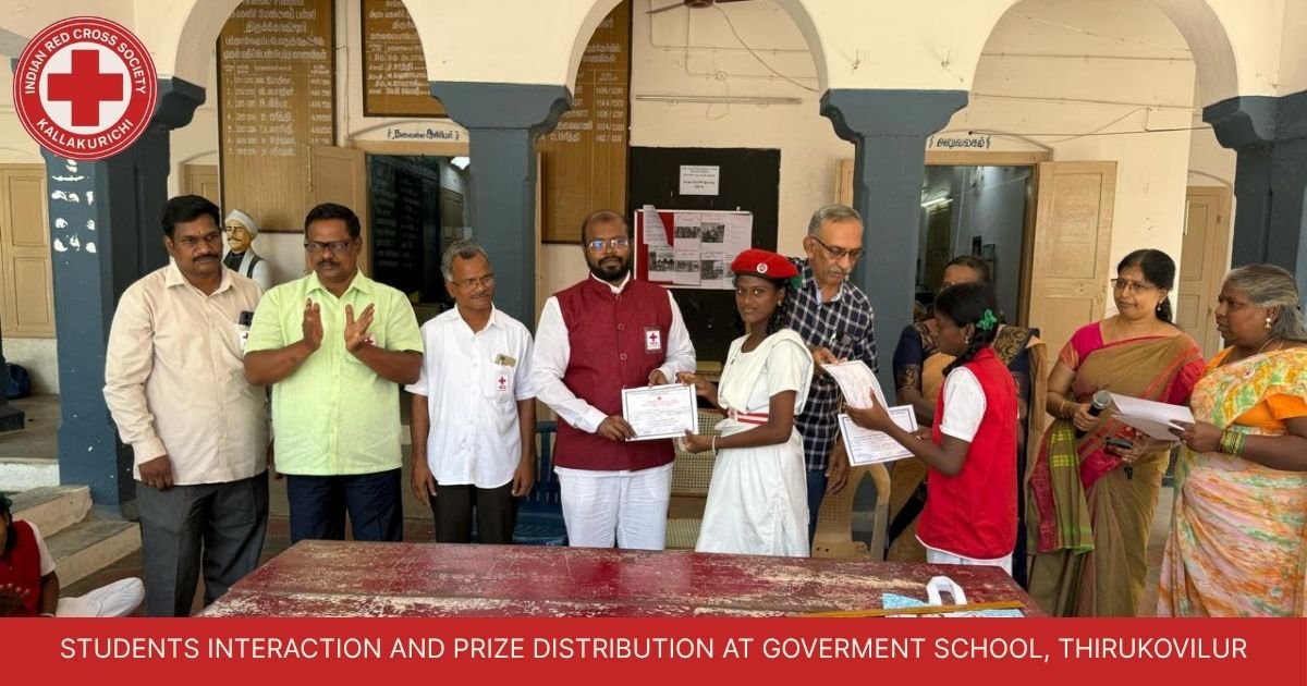 IRCS Kallakurichi engages with students at Thirukovilur Government School, distributing prizes to celebrate academic and extracurricular achievements.
